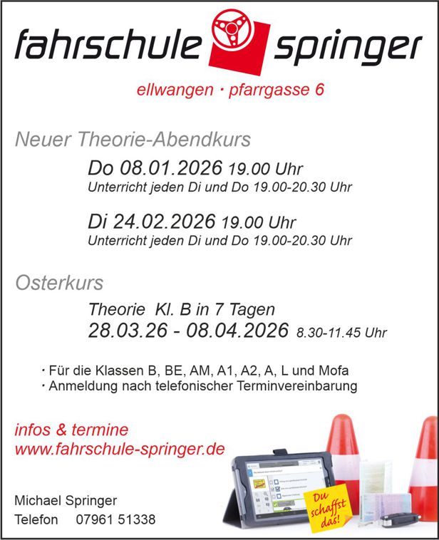 Neue Unterrichtstermine 2026 auf www.fahrschule-springer.de ab